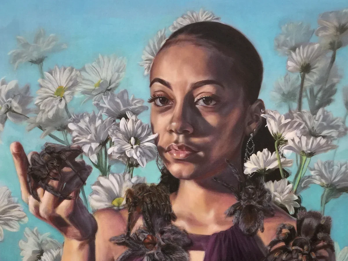 Mixed-media painter, muralist, and tattoo artist blending folklore, mythology, and portraiture with fluid color and symbolism.