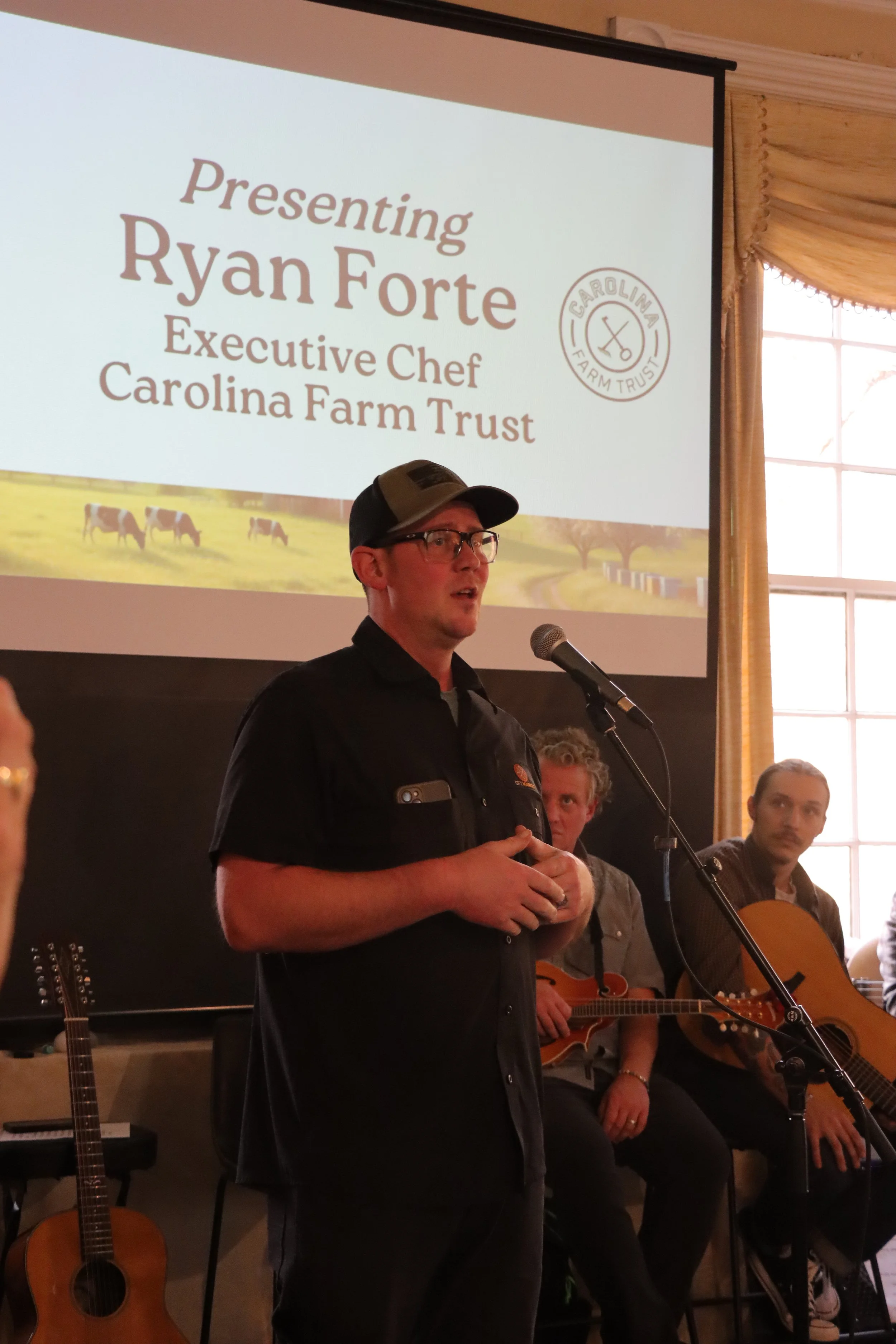 Following their opening set, Zack Wyatt, founder and CEO of Carolina Farm Trust (CFT), took the stage to discuss rebuilding a regional food system that supports farmers, restores soil, and makes local food accessible to everyone.