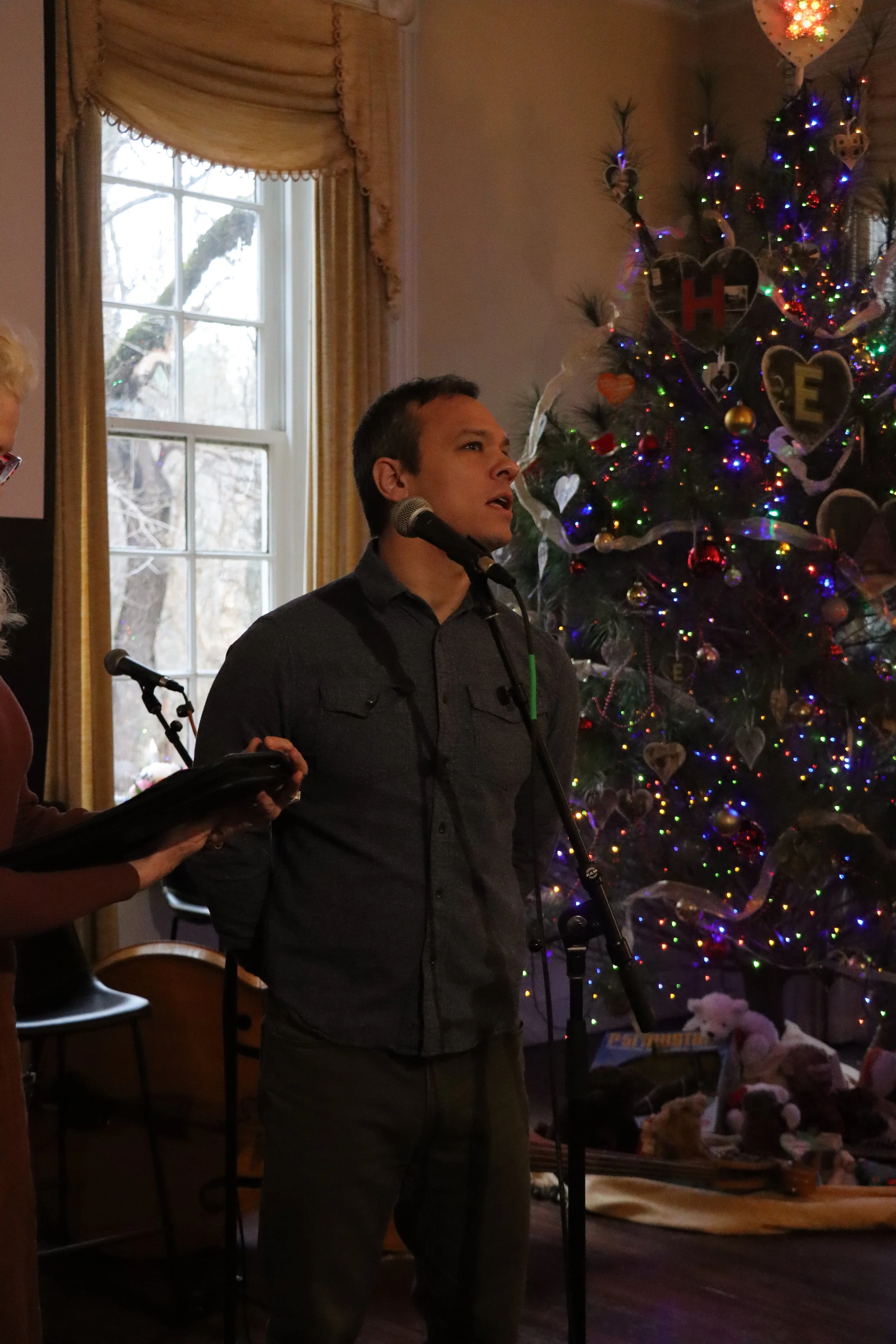 Across the hall in the Pink Room, that conversation became something everyone could taste. Guests warmed their hands around cups of lightly spiced, gently sweetened mulled yaupon tea with enough spice to brighten it, not enough to hide it. In a program shaped by stories and memory, this little ecological lesson landed perfectly: pay attention. What we inherit is all around us, and sometimes all it takes to hear it is a cup in your hands and a moment to taste where you are.